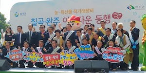 경북 칠곡군과 전북 완주군이 합동으로 서울 청계천 광장에서 14일 오후 지역대표 농산물을 알리는 농특산물 직거래장터 ‘칠곡·완주의 아름다운 동행’을 개최했다.